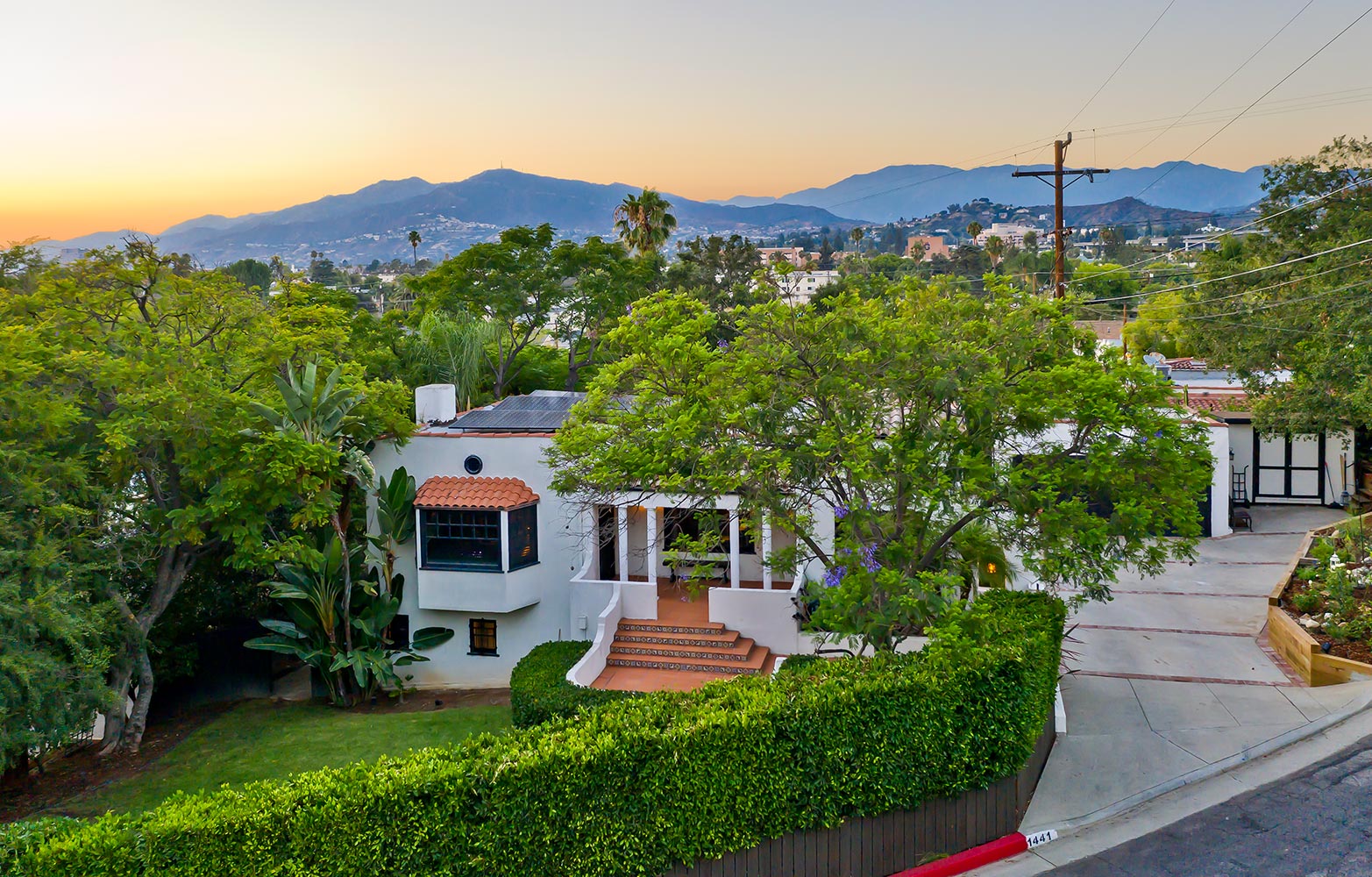 Say hello to this old Los Angeles Craftsman/Spanish Adams Hill adjacent home wrapped in privacy with tree top views with solar, alarm, tankless water heater upgrades for modern living. Constructed with integrity in 1925, the house has two front doors with courtyard entry, over 2,000 sq ft with 2 bedrooms upstairs with full bath in between and 3rd primary bedroom downstairs, with two walk in closets, full bath and sliding door to back yard oasis. Comes with off-street driveway parking and 2 car converted garage pro studio. Record music, voice overs, podcasts or use as an ADU. You can entertain by the Batchelder fireplace in the living room with custom blinds, play on the grass in the yard, bbq in the backyard. Dining room has built-ins and custom shelving. Kitchen garden window and breakfast nook or office. Period elements include curved archways and hardwood flooring that resonate with LA's history. Use bonus room downstairs for storage, workspace anything your heart desires. Rare hillside terraced lot offers shelter across the bridge from what Forbes calls the best neighborhood in America. Perfect staycation location or seamless access to Griffith Park hiking trails, Americana at Brand, Atwater Village, Dodger Stadium, York Blvd and much more. *Ernest Allan Batchelder [January 22, 1876 – August 6, 1957] Leading Arts and Crafts movement tile maker, American artist and educator who made Southern California his home in the early 20th Century.